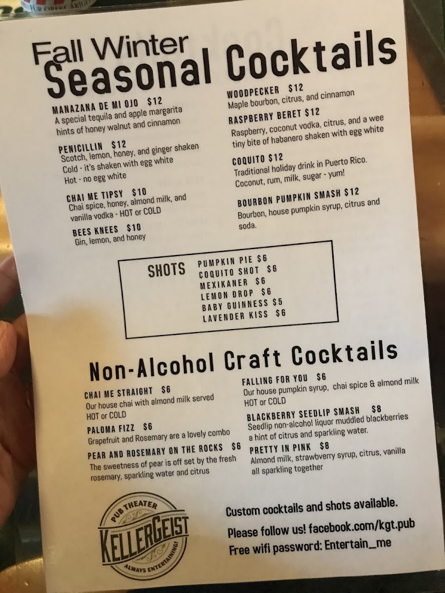 Welcome to Kellergeist, a culinary gem located at 111 Central Ave in Great Falls, MT. Here, you will discover a menu that seamlessly marries comfort and creativity. Indulge in a variety of flavorful shots like the unique Coquito Shot or the festive Pumpkin Pie, perfect for a quick pick-me-up.